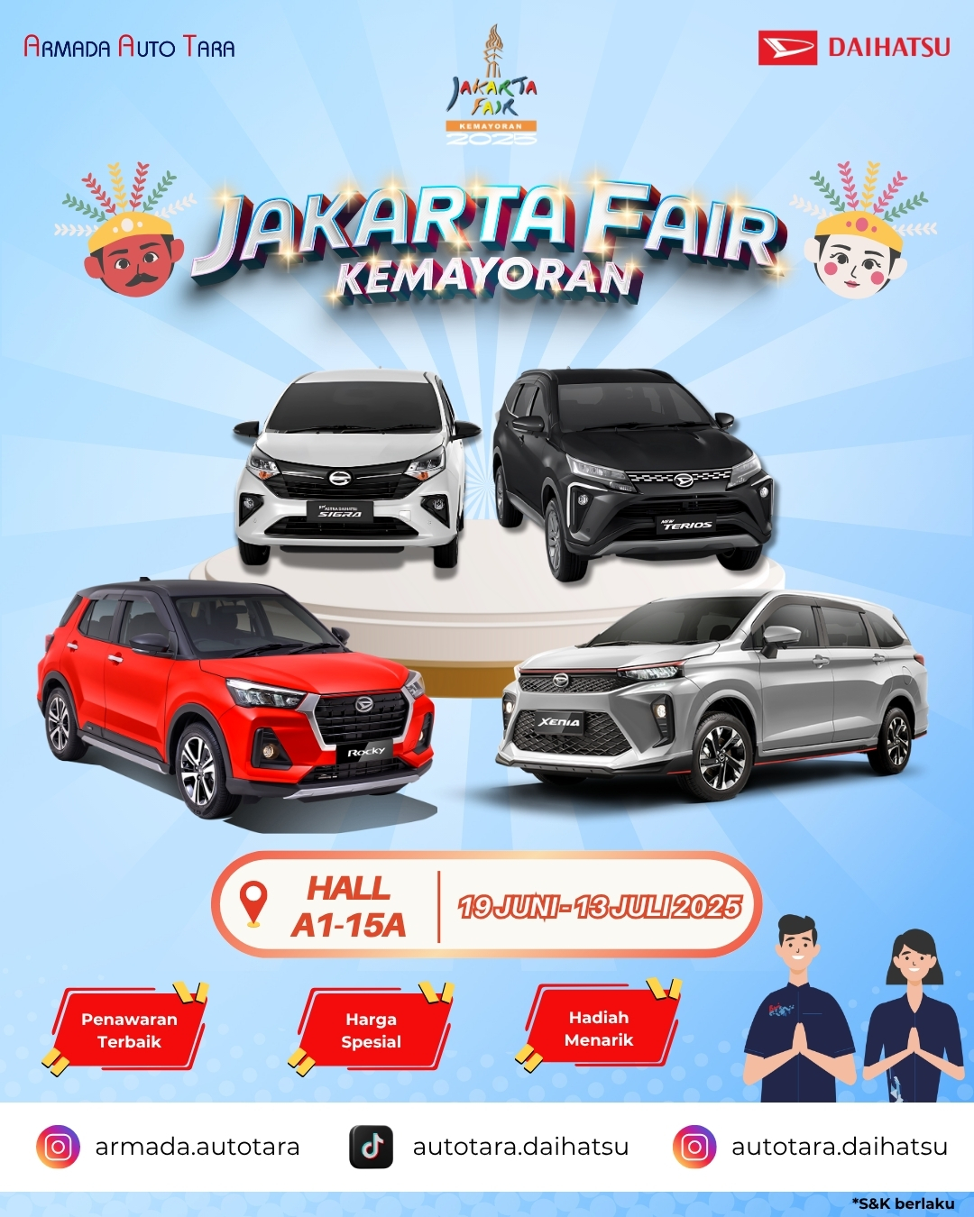 Hi, Sahabat Daihatsu! Auto Tara Daihatsu hadir kembali di PRJ 2025 mulai dari tanggal 19 Juni - 13 Juli 2025, lokasi booth kami ada di Hall A1-15 A, akan ada banyak penawaran yang menarik disana untuk Sahabat 🤗