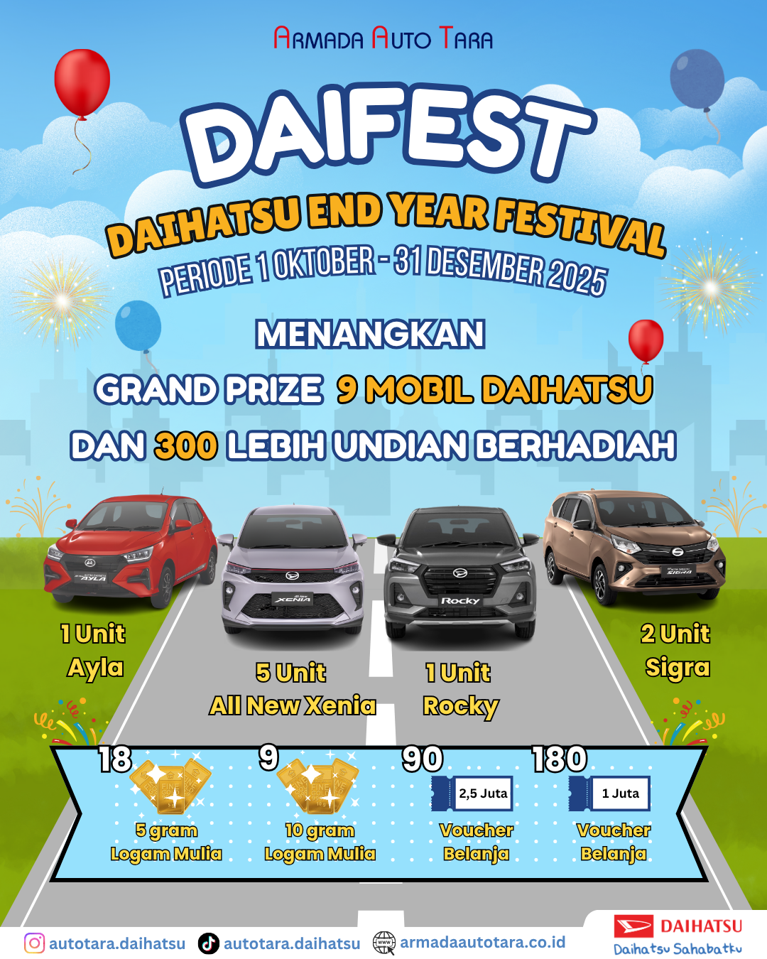 Akhiri tahun dengan langkah baru! bawa pulang mobil Daihatsu pilihan sahabat dan menangkan kesempatan mendapatkan grand prize 1 unit mobil daihatsu 🚗